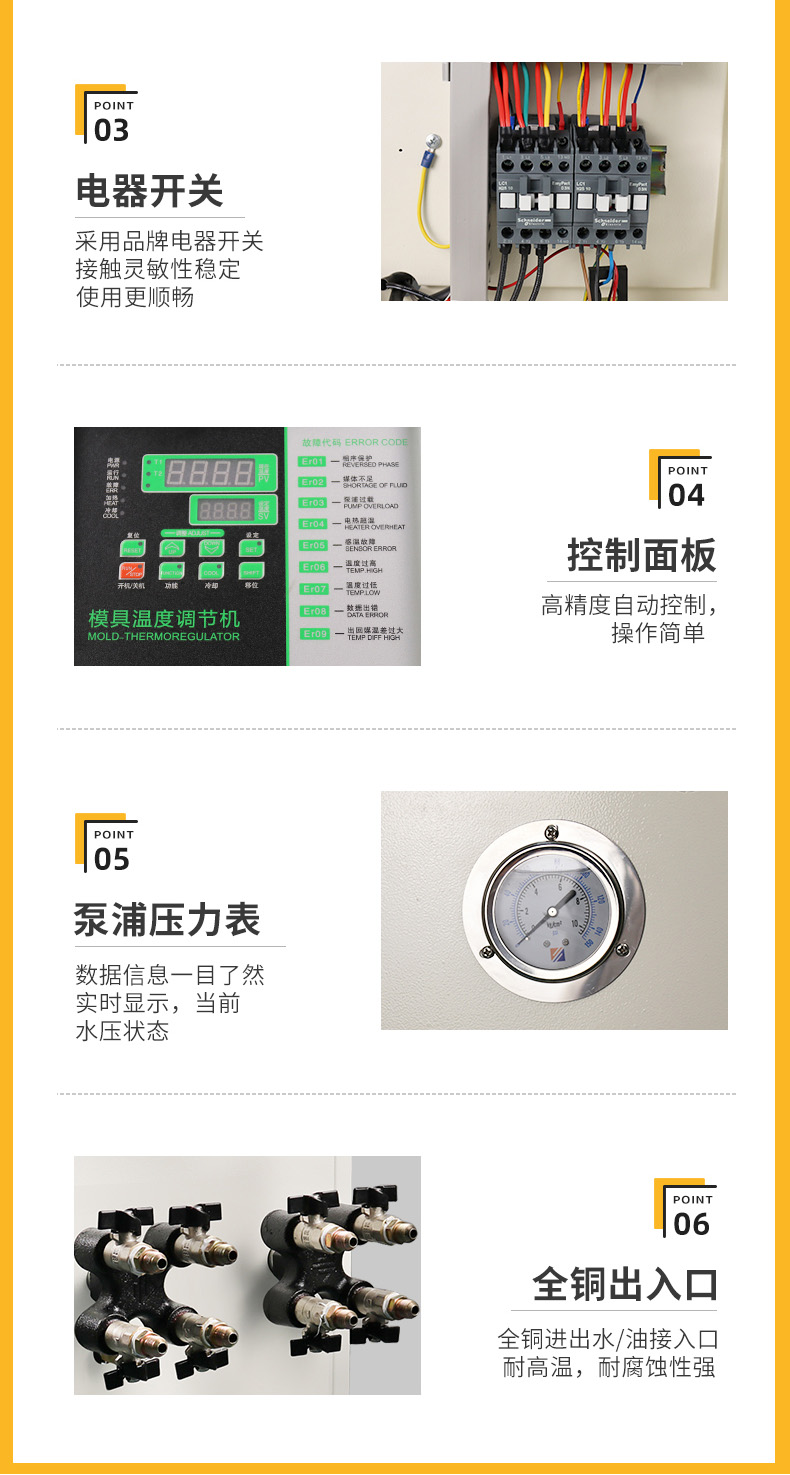模溫機又叫模具溫度控制機,廣泛應用于塑膠成型,導光板壓鑄,橡膠輪胎、滾輪,化工反應釜、粘合、密煉等各行各業。從廣義方面講,叫溫度控制設備,包含加溫和冷凍兩個方面的溫度控制。